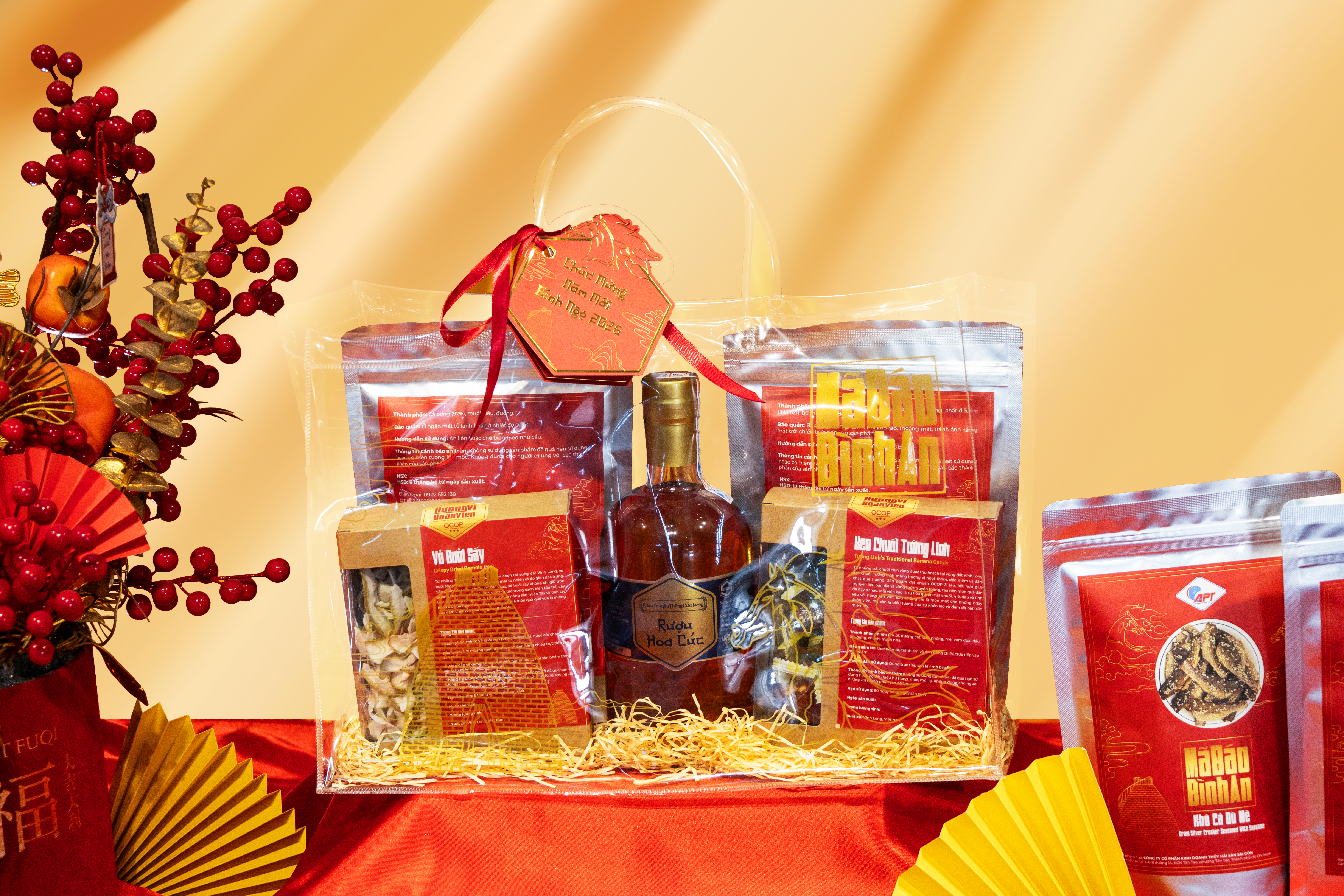 Rượu truyền thống gần như là linh hồn của nhiều giỏ quà Tết, bởi nó gắn liền với văn hóa sum họp, tiếp khách và chúc tụng đầu năm. Một chai rượu được chọn đúng không chỉ để thưởng thức, mà còn là cầu nối để mọi người quây quần, trò chuyện và kết nối.